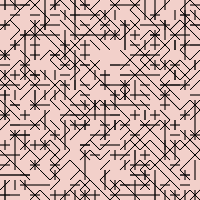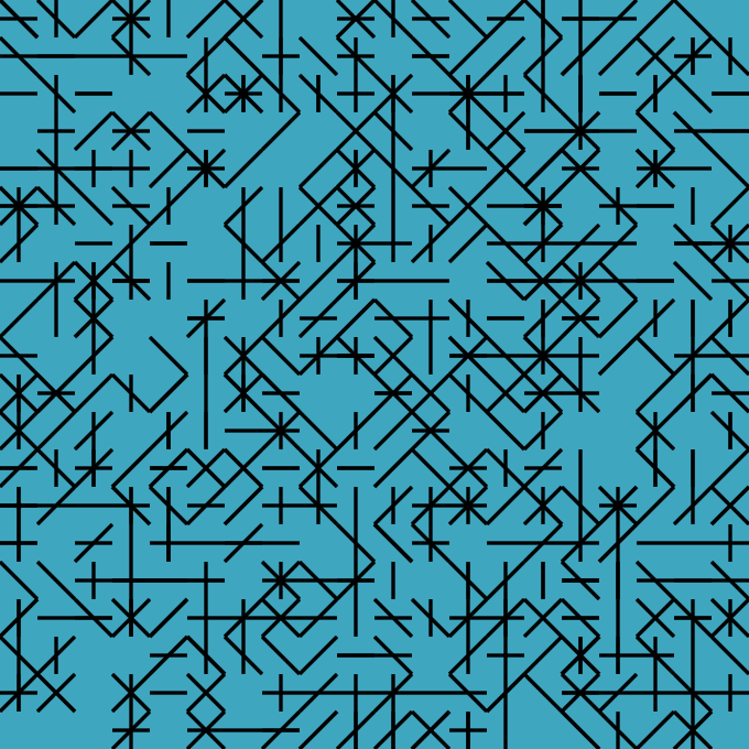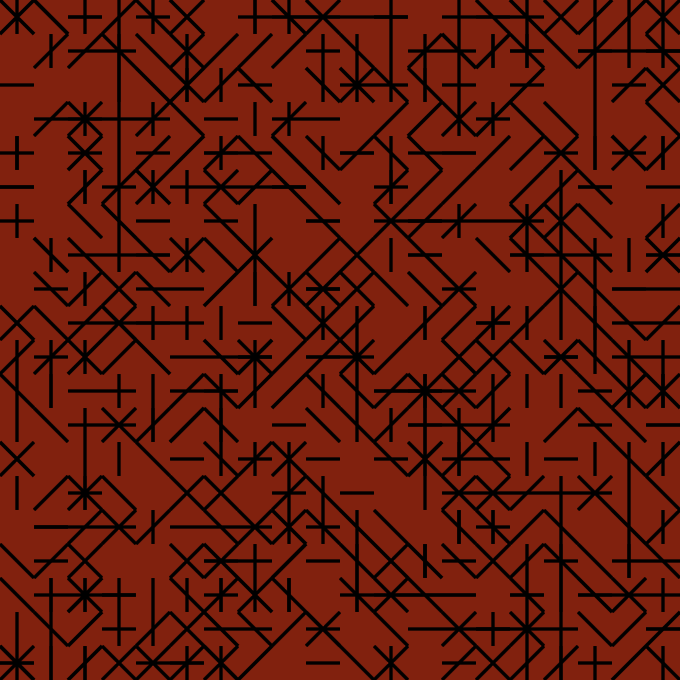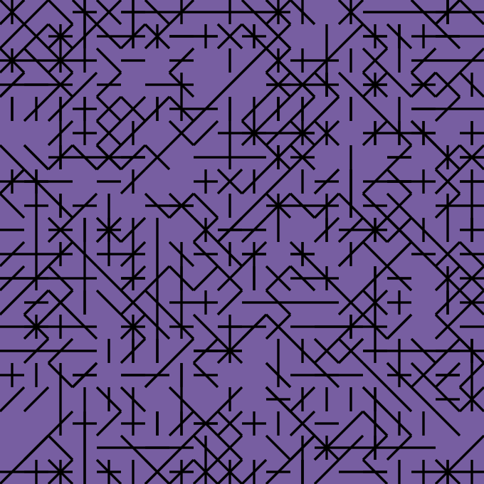 These labyrinths evolve from four simple elements: horizontal bar, vertical bar, diagonal left to right, and diagonal right to left.